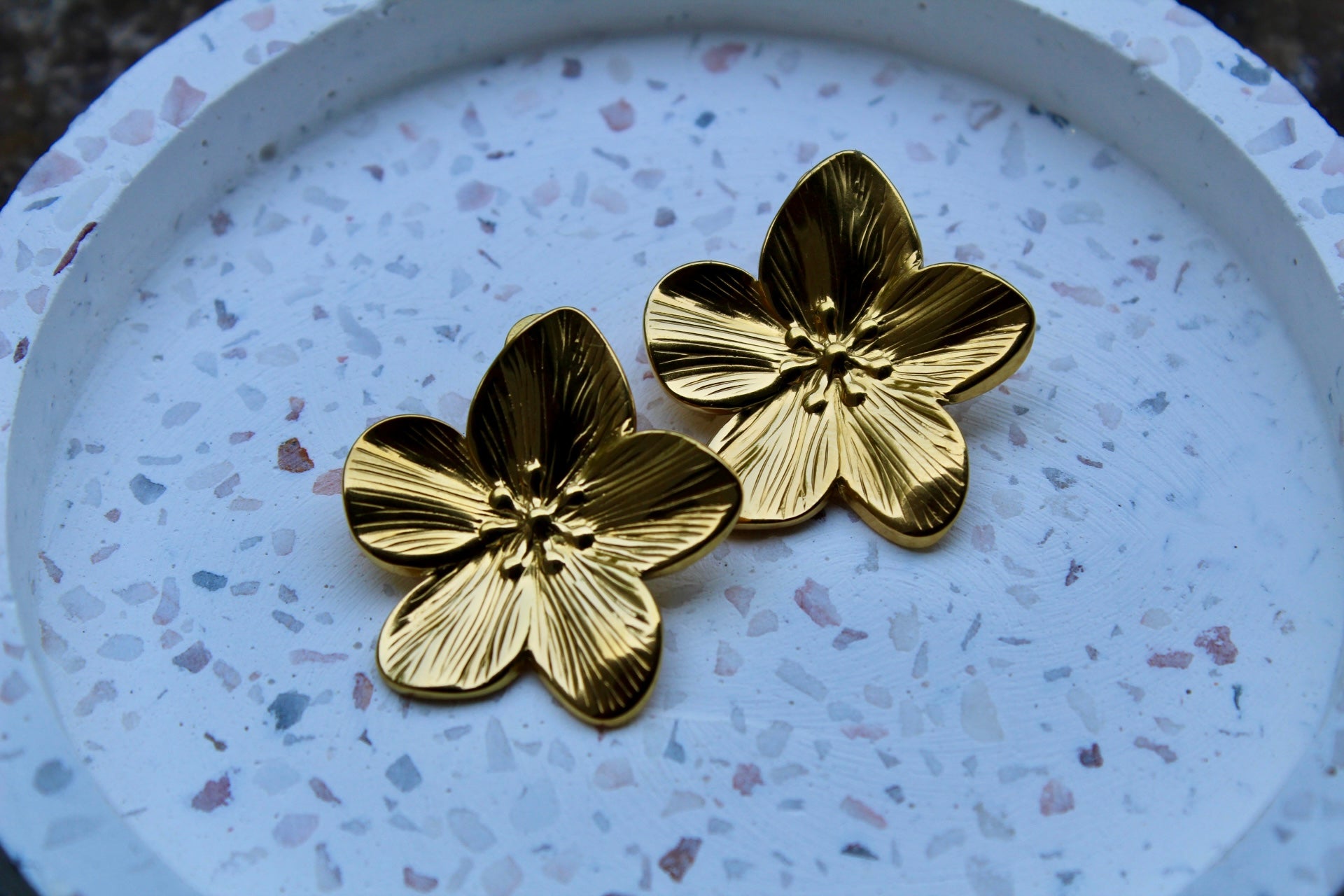 Osez l'élégance audacieuse avec les boucles d'oreilles NOEMIE, ornées de fleurs dorées en acier inoxydable. Leur design imposant et brillant attire tous les regards, parfait pour affirmer votre style avec confiance et caractère. Un accessoire qui transforme chaque tenue en une déclaration de force et de féminité.